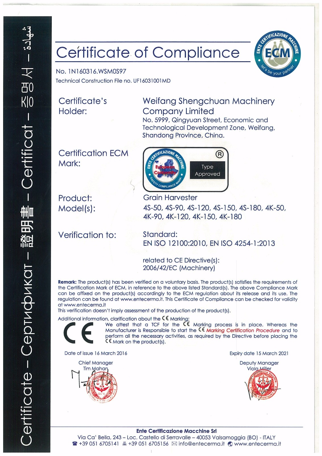 Certificate: CE