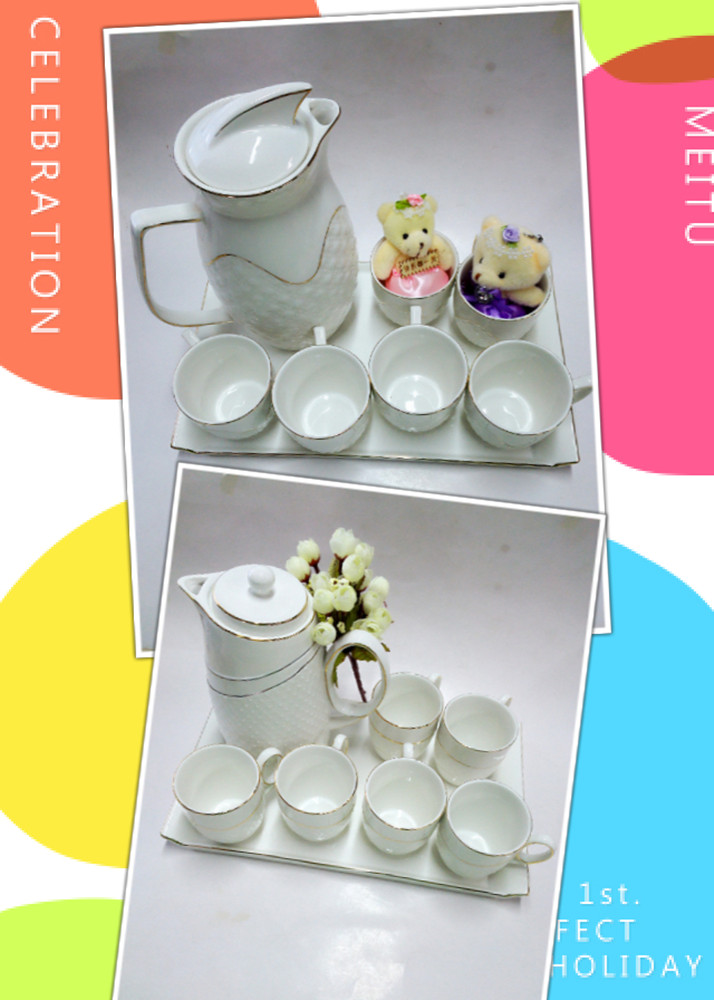 Fashion design ceramic tea sets and water sets with white ceramic tray