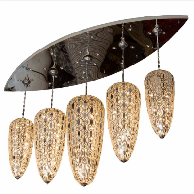 DESCRIPTION: Modern designed chandelier is made of stainless steel and crystal with the oval chili shape. It's quite vintage and fashion.