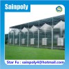 Poly-carbonate (PC) /plastic. Greenhouse has the modern outline, stable structure and beautiful style, especially many roofs on every great span. It has the great performance to keep warm and transmit the sunlight. A lot of gutters can be equipped so as to drain the water on the roof. And the PC Greenhouse can resist the wind strongly. So that the PC Multi-span Greenhouse is suitable for the areas of heavy rains and strong winds. Moreover, the PC sheet is not very heavy and has great tensile strength.