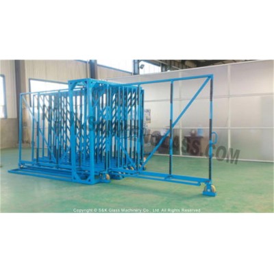 This raw glass sheet storage system is developed in accordance with market development, according with the demands of glass production rhythm, it is very convenient to control the whole packs of raw glass sheets, few land occupation requires and have large raw glass sheets storage, it can save much of land, with using wireless remote control technology to control the opening and closing of any set of glass shelf in this system, making the whole glass shelf move faster, more stable and safety, save more time and labor for keeping or taking the glass sheets.