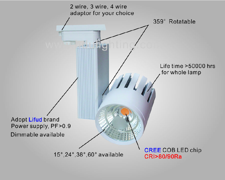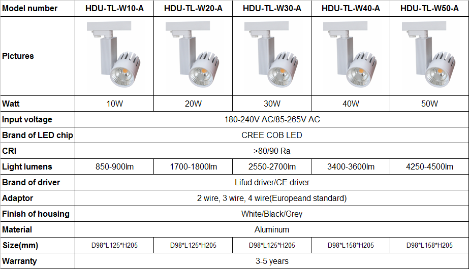 10W 20W 30W 40W 50W LED track light with Philips LED chip