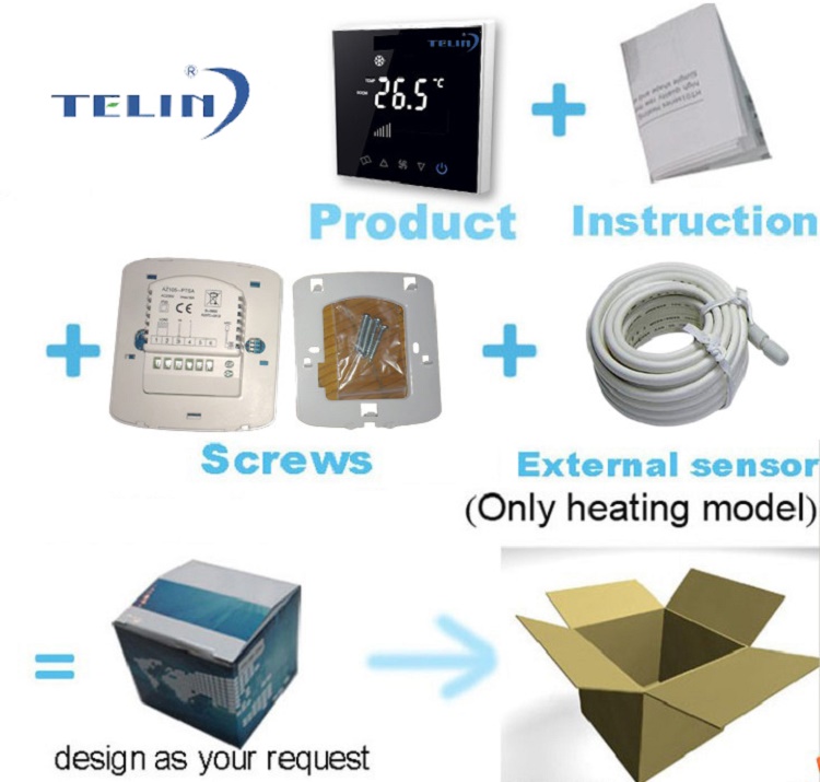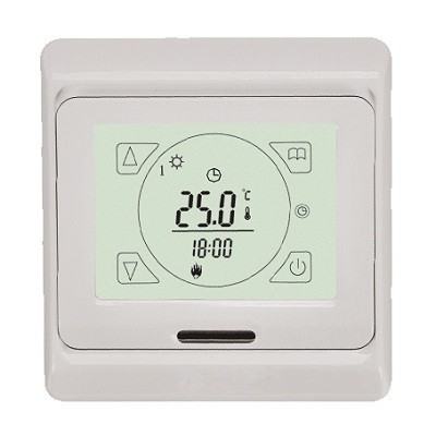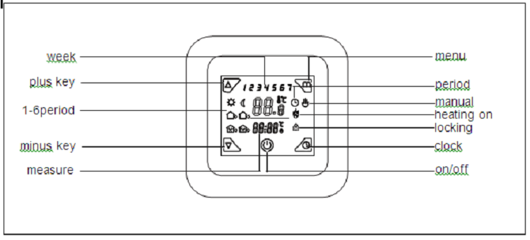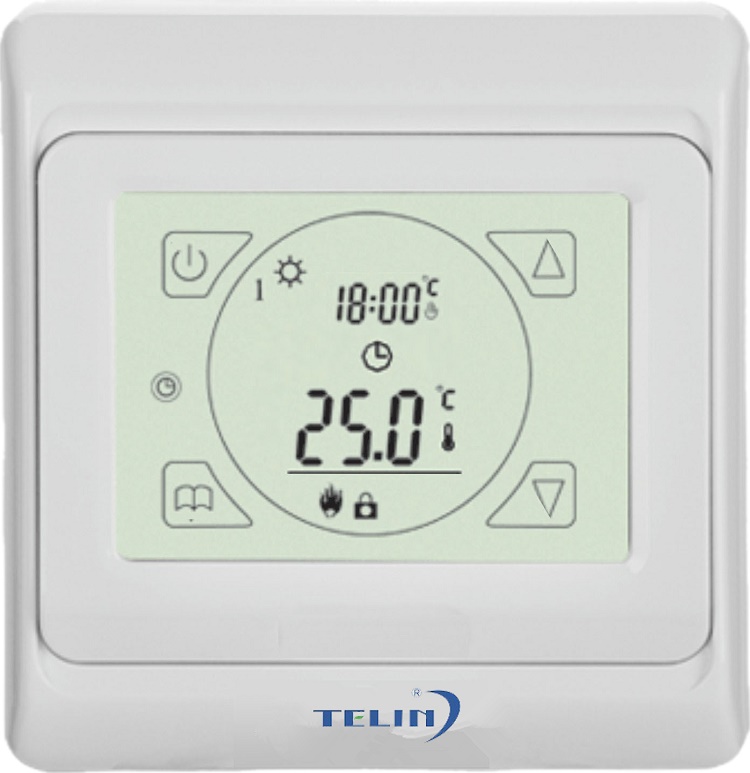 Weekly circulation digital programming thermostat with LCD touch screen,which has 6-event everyday.Manual mode and programme mode could be selec-ted.The thermostat is recommended for control of electric heating devices.