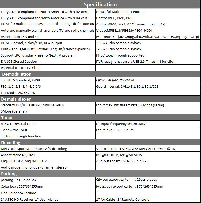 1.MPEG4 H.264 HD DVB-T STB & Media Player & USB PVR & USB2.0 & HD