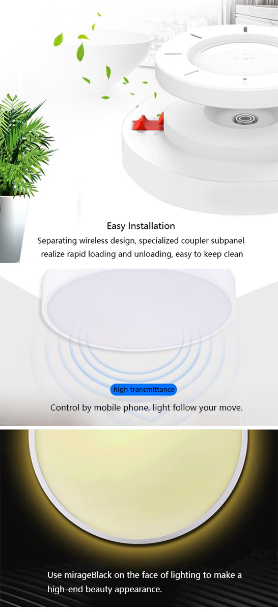 This smart ceiling light is designed as sporting white color in a circular shape. It adopts 200PCS LEDs of a color rendering index that is up to 95Ra, providing genuine natural lighting effect. The dual-chip three-way dimming system allows a flexible adjustment of brightness and color temperature, max brightness up to 2000 lumens. In addition, a moonlight modewhich gives the look of the moon when turned on is surprisingly comfortable and care your eyes. Moreover, it supports APP control to achieve scene linkage. The light can be controlled by smartphones through WiFi. It also comes with a Bluetooth remote controller that allows you to remotely switch on and off your light without necessarily being in the same room.