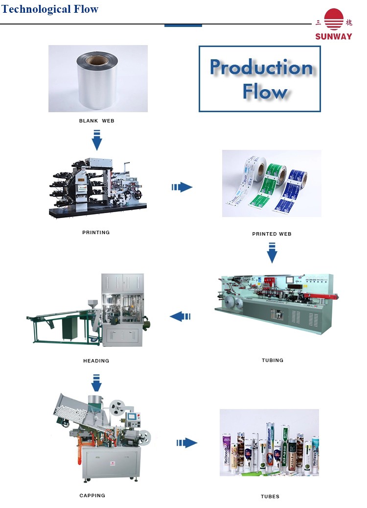 This machine is an ideal machine for the tube manufacture plants. It uses the advanced PLC control and screen-touch interface programs, and the servo electric drive can keeps pinpoint. It also enjoys firm structure, widely usage, high speed and stable operation. Accurate holing, attractive sealing and precise capping are all the advantages of the machine.