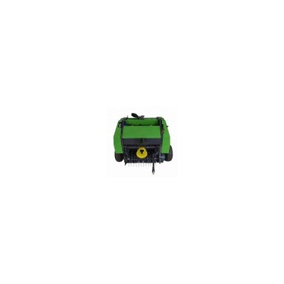 The hay baler machine is composed of pick-up part, compress rolls, sprocket transmission mechanism, a rope box, a lead rope rod, an early warning device, hydraulic control mechanism and three point linkage etc. It can move and work with a 25-50 HP tractor by PTO shaft.