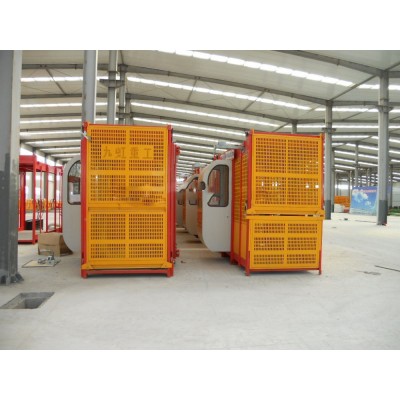 SC200/200 Passenger Hoist adopts computer aided design. Comparing with traditional construction elevator, it is more attractive, lighter, more secure and easier to handle. Depending on different customer' needs, the lifting cage capacity can reach up to 1-4 ton, and the running speed can reach 28~38m/min. Moreover, VVVF speed regulation and PLC can make 0~68 limitless speed, automatic layer selecting and leveling as required.