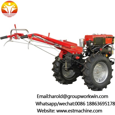 This 8hp hot sale walking tractor price, it is fitted with 8hp diesel engine, one cylinder, water-cooling type with radiator; two wheel drive with wiseclock system; There are 8 gears in all, 6 forward + 2 Reverse; When fitted with different implements, it can fulfill different kind of farm work , such as tilling, rotavating, irragating, planting, transporting etc. It is a multi-functional tractor, a good farmer-helper .