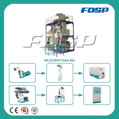 Feed Pellets Processing Technology:Raw Material →Grinding →Mixing →Pelletizing →Cooling →Crushing → Screening & Grading →Packing Equipment Related to Complete Feed Pellet Production Line:Hammer Mill →Mixer →Pellet Mill →Cooler →Crumbler →Rotary Screener →Bagging Scale →Control CenterDetailed processesRaw Materials Raw materials can be corn, brown rice, paddy, sorghum and soybean meal etc.Grinding Process:The feed grinder can grind the raw material ingredients to the required size. There are various hammer mills which can satisfy different requirements.Mixing Process: Mixing is considered to be one of the essential operations in feed pellet processing. Lack of proper mixing may lead to reduced diet uniformity, affecting the feed pellet quality. Pelletizing Process:Feed pellet mill is the core equipment of the whole production line. According to different raw material, material formula and working condition, we can offer you different pellet mills. Ring dies are applied to ensure large output.Cooling Process:The feed pellets pressed out by the feed pellet mill are hot and moist. They can't be crushed, screened or packed immediately. Counter-flow feed pellet cooler is designed to cool or dry the feed pellets. It can decrease the temperature and moisture of the feed pellets, preparing for the following processes.Crushing Process:Different poultry, livestock or aquatic feed pellets are with different sizes. Some big ones should be crushed into small ones. Roll type feed pellet crumbler is just the equipment for feed pellet crushing. Double-roll feed pellet crumbler is suitable for crushing poultry feed, such as chicken feed, duck feed and goose feed etc. Three-roll feed pellet crumbler is suitable to crush aquatic feed including fish feed and shrimp feed etc.Screening and Grading Process:The rotary grading sieve can be used to screen and grade the feed pellets. After processing, you can get the qualified feed pellets without fine powder.Packing ProcessThe feed pellets should be packed for transporting, storing or selling. Automatic weighing and packing machine can weigh and pack the pellets automatically with high accuracy.Automatic PLC Control System:With the automatic PLC control system, the production line is with high efficiency and convenient operation.![Whole Set Complete Animal Feed Processing Plant]()