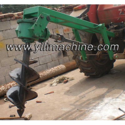 The machine is working with the blade rotating for drilling and digging the soil. It consists of the universal joint, mounting frame, gear box, drill head and draw rod, etc