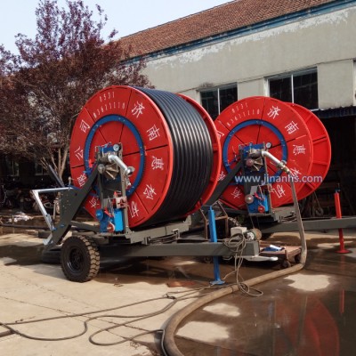 device and water composition. The key components of water turbines, gearboxes, PE pipe and structural piece are in good or bad quality of the processing technology directly affects the effectiveness and use of the whole operational life. Features 1.Irrigation machine is mainly composed of Frame, Reel,PE Tube, Water Turbine,Gearbox and Water Carriage. 2.With Charateristics of Simple and Compact Structure, Easy Operation and Moving, The irrigation machine can be operated by 1-2 persons. 3.High Efficiency and Large Irrigation Area. The Sprinkler can spray water in all directions. 4.Good irrigation quality and uniformity can be up to 85% above. 5.The Irrigation machine, with multi-functions, can be used for farmland irrigation, fruit and vegetable irrigation,pasture and sugarcane spray,power plant and port dedusting. Performance parameters of JP series reel type Sprinkling Machine![Professional Manufacturer of Reel Sprinkling Machine]()