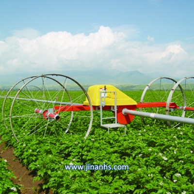 Huisong Rollaway Sprinkler is large semi-mechanized irrigation equipment group, it consist of central drive vehicle, water delivery pipe(also act as roller),from driving wheel nozzle, brake lever, water hose, etc.