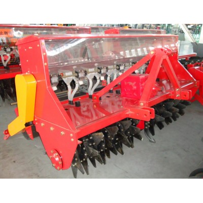 FEATUREThis kind of seeder is a multifunction seeder, suitable for drilling wheat, corn, sorghum, soybean, sesame and other crops, combine the function of leveling. furrowing , sowing, fertilizing, covering at the same time. This wheat planter can be hitched to a tractor of 66-75hp . it drills seeds and fertilizer together but delivers them separately in s single drive. Seeds and fertilizer are drilled at different depths thus improves germination. Wheat planter uses press wheel, driven by the chain in drive part and also has the feature of seeding uniformity ,high working efficiency .saving seeds, and the depth of seeding can be regulated and controlled, the row spacing is stable.PARAMETER