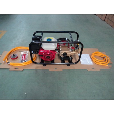 This stretcher type power sprayer is composed of tri-cylinder high pressure pump, four stroke gasoline engine, setting frame etc. It can be used to spray insecticides, herbicides and fungicides in agricultural and horticultural plant protection. It is an ideal choice in the spray treatments for farmland, orchards, vegetables and upland crops etc. It can also be used for livestock farm cleaning, disinfection, cooling, as well as used for washing vehicles, walls, floors, swimming pool etc.