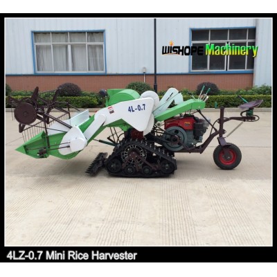 Our 9.7Kw engine power 1200mm cutting width mini rice harvester is small, and especially suitable to use in the hilly and mountain areas. Though it has small size, the working productivity is as fast as