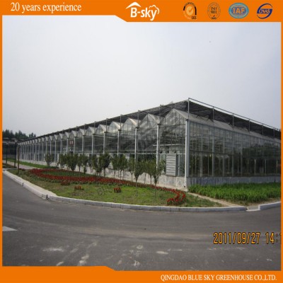 Venlo type glass greenhouse uses 8mm or 10mm hollow glass profiles or single glass pro-