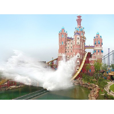 The flume ride is a type of theme park water rides, it is one of the most extreme thrill rides in amusement parks. When you ride this amusement park rides, the boat will first climb to the highest altitude, and then suddenly slide down at a speed of about 80 km/h along the track, while generating a huge splash of water around the boat, which will make you feel very excitement and thrill. Therefore, the amusement park water ride is very popular.