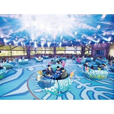The teacup carnival ride can ride up to 95 tourists at a time, not only with its large size and rotating function but also with a unique lifting function. The large turntable rotates together with the small turntable, and multiple turntables rotate under the action of centrifugal force. It can be raised and lowered during the rotation process, bringing passengers an excellent entertainment and exciting experience.