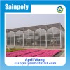 Poly-carbonate (PC) /plastic. Greenhouse has the modern outline, stable structure and beautiful style, especially many roofs on every great span. It has the great performance to keep warm and transmit the sunlight. A lot of gutters can be equipped so as to drain the water on the roof. And the PC Greenhouse can resist the wind strongly. So that the PC Multi-span Greenhouse is suitable for the areas of heavy rains and strong winds. Moreover, the PC sheet is not very heavy and has great tensile strength.