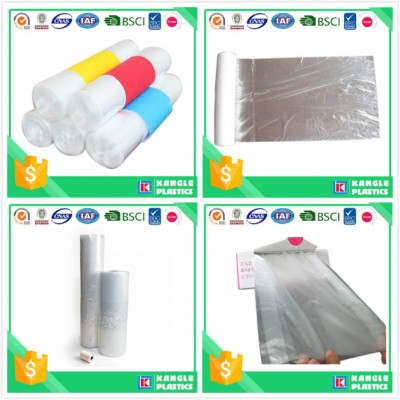 All of our products are made of PE. They include trash bag, drawstring bag, charity bag, shopping bag, deli sheets, tare scale sheets, garment bag, nappy bag, pet poop bag, food bag, PE apron, PE gloves, etc.