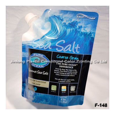 3). With bottom gusset and spout on the coner of the sea salt bag