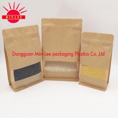 ![Flat Bottom Stand up Pouch Kraft Paper Bag with Clear Window Zip Lock Coffee/Tea/Food Bag]()