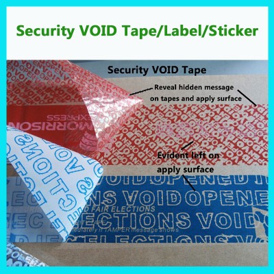 Application:1. Used to all types of tamper evident products, and other fields of anti-fake. Security void stickers can be provided to printing enterprises for printing label sticker, seal labels.2. To prevent label, sticker being used again after peeling off.3.To prevent the contents of the product or packaging were opened, changed, embezzlement. It is the anti- forgery seal of the product.4.To prevent the documents, mail and parcels unauthorized open.5.Security void stickers/labels/tapes are widely used for packaging of electronic, bank, cosmetics, police, government, express, medicine, ect trades.6.Any removal action for applying security void tapes, warranty void labels will cause revealing hidden message "VOID" shown both on tapes,labels,materials and application surface. Tapes,labels,materials after peeling off could not be used again for being no glue on tapes,ect.